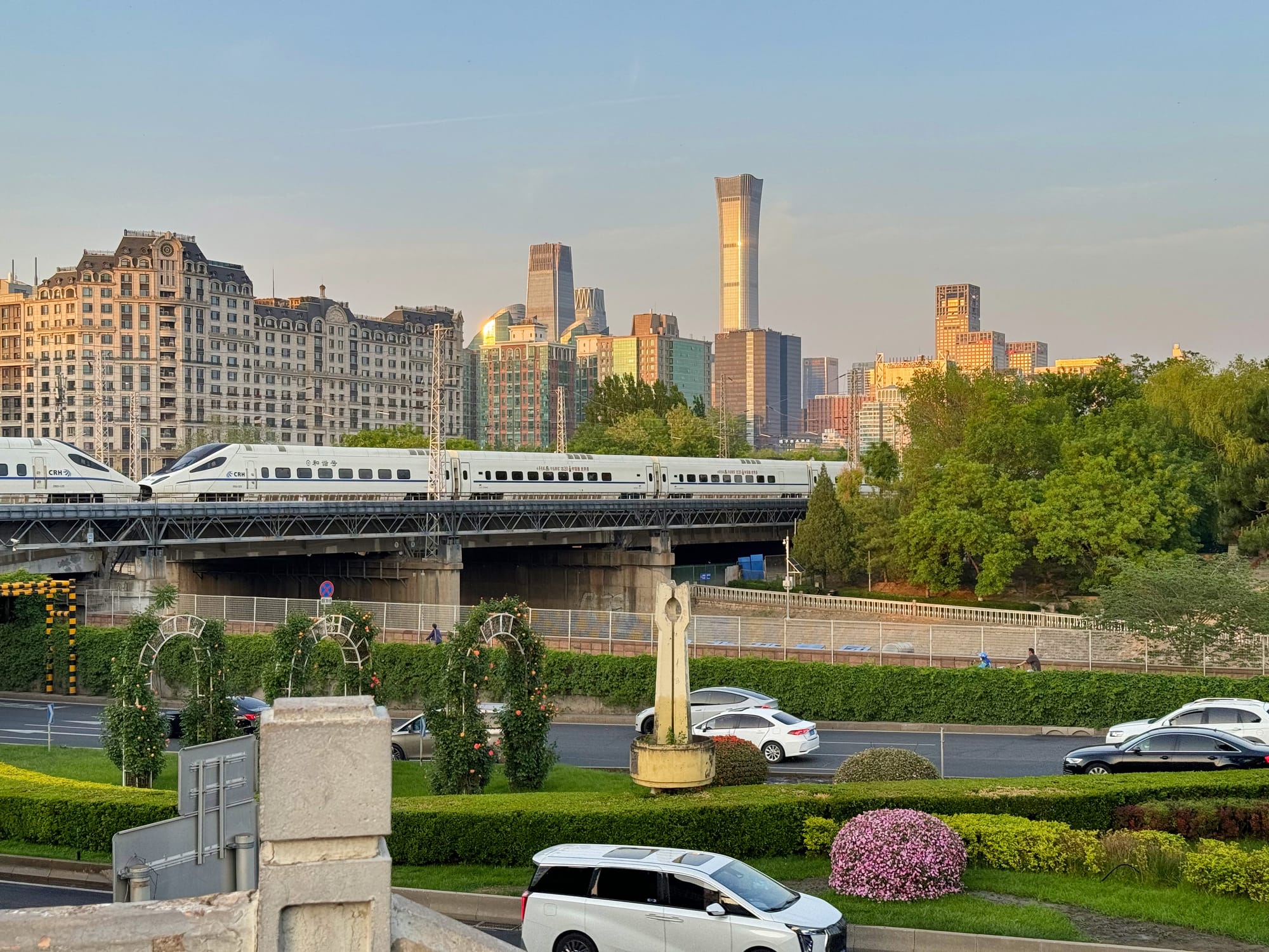 五一去看了草莓音乐节。音乐节把假期分成了1+3,回来躺了一天,假期只剩两天了,外面天气很好,我不想浪费,决定骑车出门溜达。沿着建国路向西,我又想骑到天安门去看看。没想到交通部门口遇到交通管制,非机动车禁止通行,只能向北转弯,再从金宝街绕了一圈回到东二环往南骑行。经过一个地下通道时我看到一些人站在天桥上拍照,想必上面风景不错,我决定也上去看看,出了通道我发现右侧是明城墙遗址公园,夕阳下风景很不错。正好这段时间在了解明朝历史,没想到完全随机的骑行带我来到了这里。